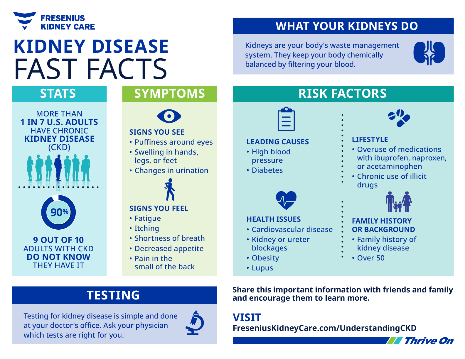 Early diagnosis is key when it comes to CKD, so it’s important to be aware of the symptoms and risk factors. Although a CKD diagnosis may leave you feeling uncertain about the future, always remember that you have options when it comes to managing your health. Working closely with a nephrologist and other members of your care team can help you live a happy and active life for years to come.